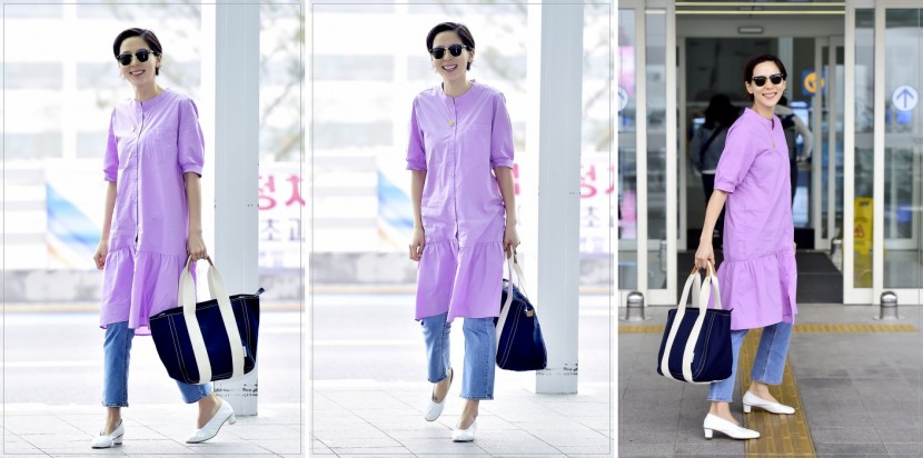 또한 여기에 공항패션의 실용성을 강조 한 에코백으로 편안하면서도 세련됨을 더한 공항 패션으로 시선을 한몸에 받았다는 후문이다.