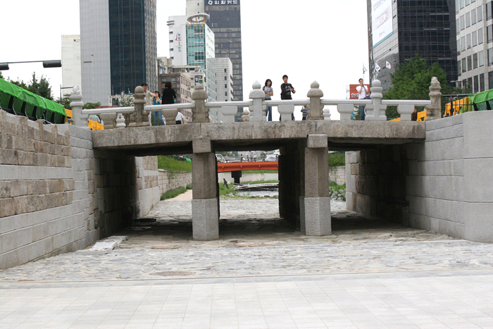 조선 태종(이방원) 10년에 정동(貞洞)에 있던 태조(이성계)의 비(妃) 신덕왕후의 무덤을 정릉으로 옮기고, 남은 묘지석을 거꾸로 쌓아 만든 다리다. 도성 최대의 다리로 어가와 사신 행렬이 지나가는 중요한 교통로였고, 정월 대보름에는 다리밟기와 연날리기 장소이기도 했다. 줄여서 광교라고도 했다.