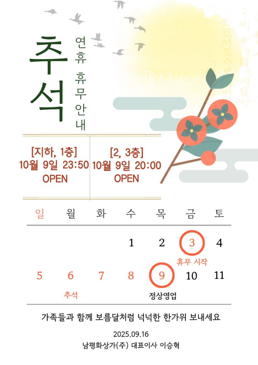 2025 추석연휴 공지 안내